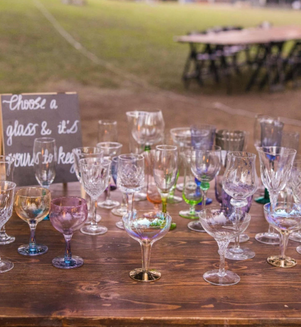 Additionally, this outdoor ceremony and reception featured some more unique details we provide: custom handwritten signage, our box of hand-crocheted blankets (which went like hotcakes on the winter evening), eclectic bohemian glasses and lavender place cards.